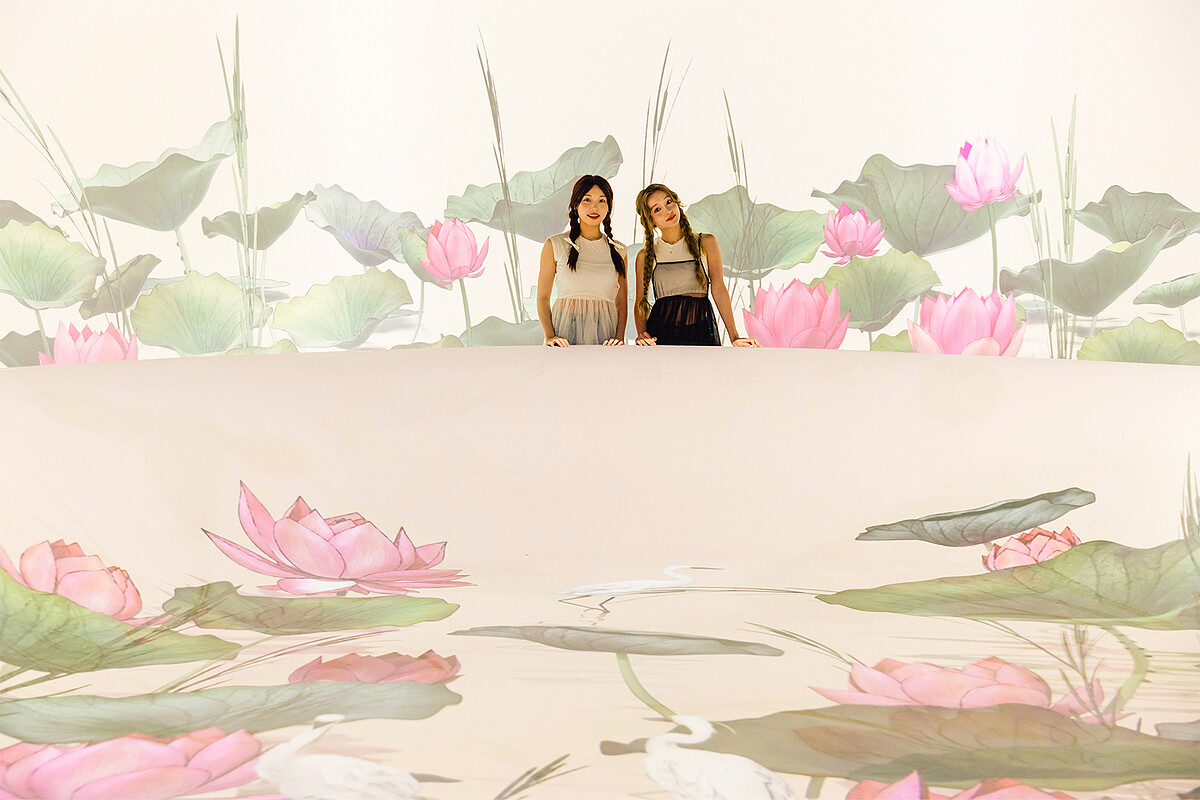 這次顗妃與紫晴抵達碰巧遇到「紋以載道」主題展,便是以「故宮紋樣」為主題,透過聲音、光影與空間的堆砌變化,提取宮殿中建築、陶瓷、織物繡線上的紋樣,透過流光溢影、巧思成紋、紋法自然、錦繡紋章、紋彩藻飾與紋窗弄影的不同光影互動呈現方式,讓乘載中華傳統文化內涵以新穎時髦的樣貌走入遊客眼中,傳遞出多彩奇妙的花花世界,無論是拍照或拍影片都十分綺麗玄幻且迷人,超級大推薦!