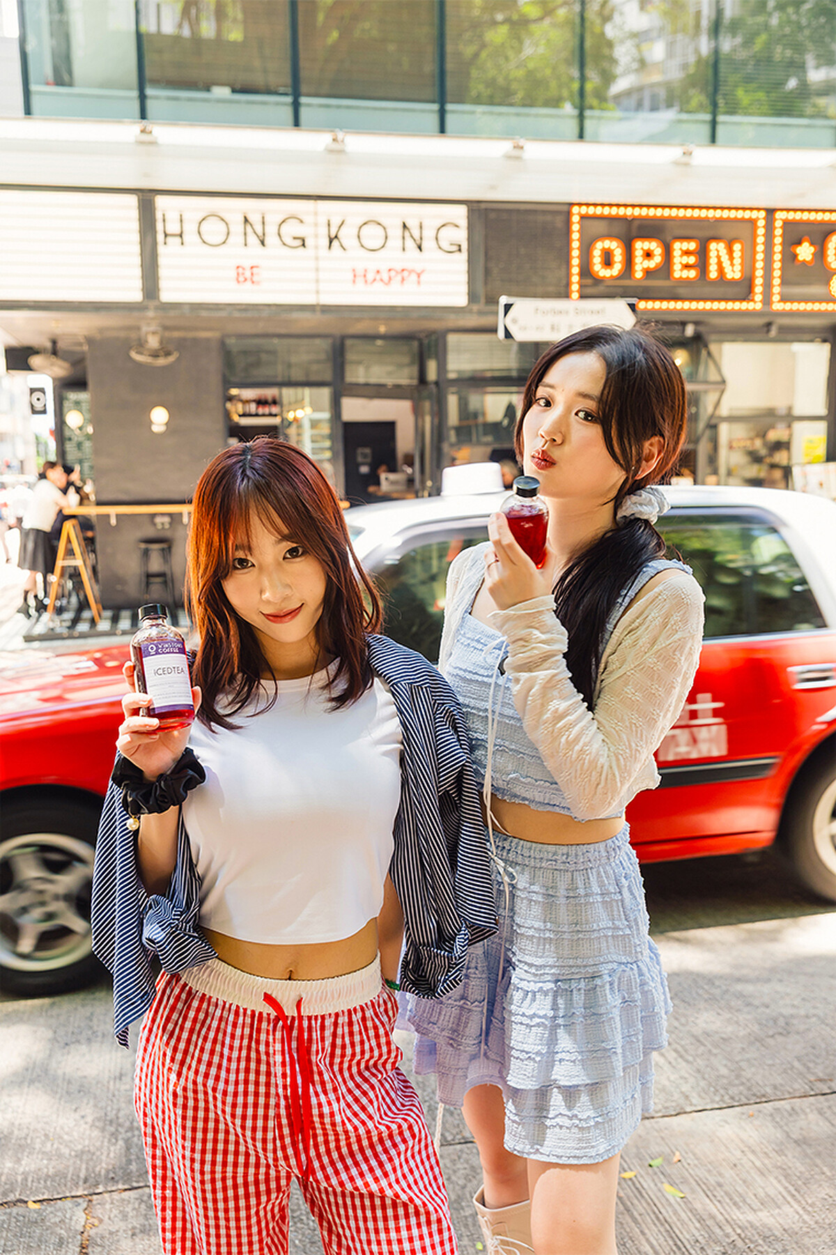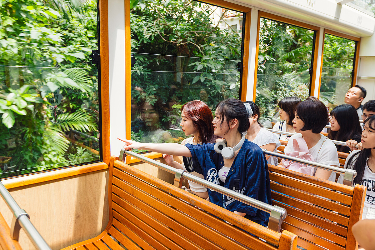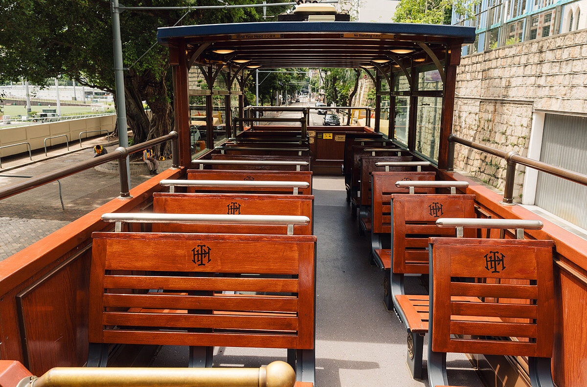 上下兩層的觀光叮叮車,上層車廂前後都是露天設計,在遵照叮叮車安全指南下,可享受到毫無遮蔽的最佳導覽視野,穿上復古旗袍的小諾與魚肉置身其中,彷彿瞬間穿越回到香港的舊街道場景,怎麼拍都氛圍感滿滿。
