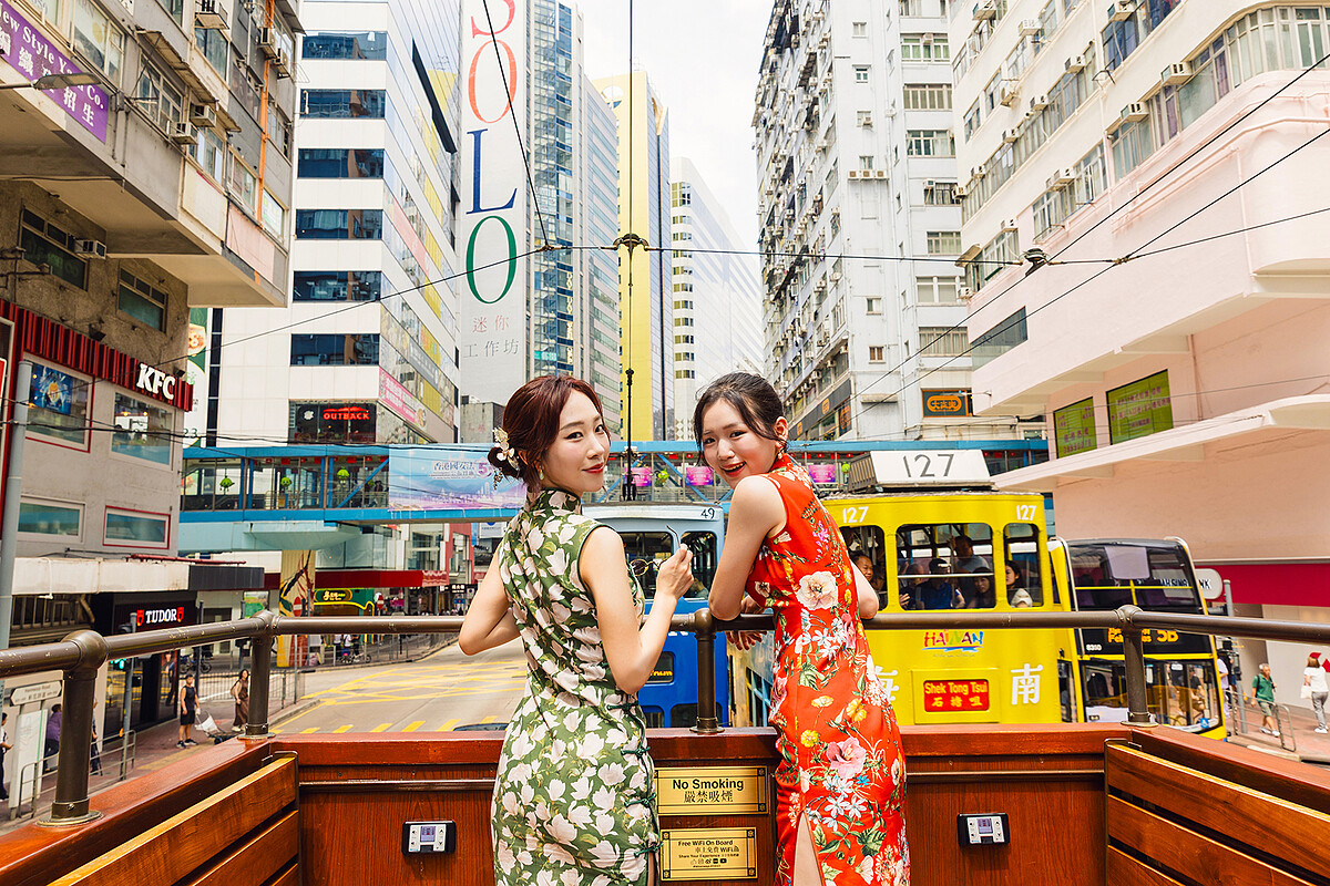 景點三:旗袍體驗 x 復古觀光叮叮車,穿梭重返香港舊時光