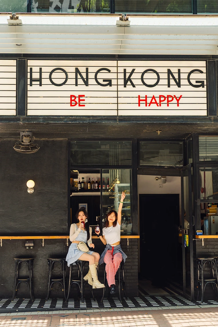座落在轉角的「Winstons Coffee」,以黑白紅不同比重分配的配色,讓整體視覺有著極簡時尚的氣息,最吸引人想要同框拍照的亮點就是招牌上的「 HONG KONG BE HAPPY」,無論單拍空景或是把自己融入到吧檯中合影,各種角度或是隔著馬路到對街拍攝,都有各自出色的視覺效果,所以常常吸引許多遊客來這喝杯咖啡,順便拍下具有鮮明香港辨識度的旅行紀念照,小諾與魚肉建議大家不妨在選擇平日人潮較少的時段造訪,會比較容易拍攝,也能好好享受一杯咖啡的休憩時光。