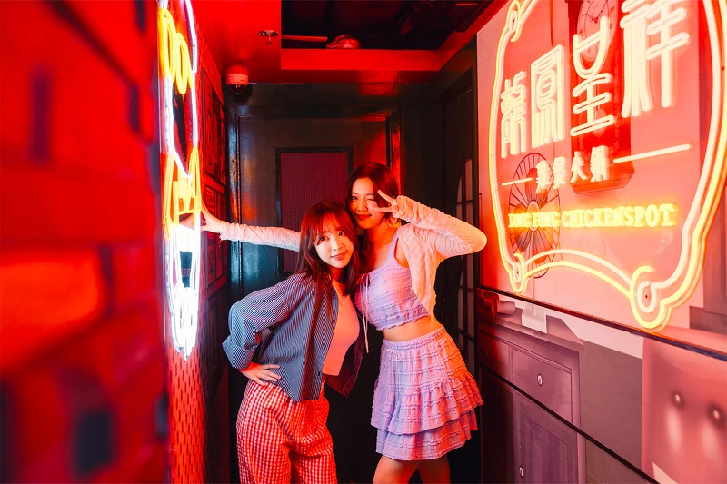 懷舊香港老式洋派混搭式的設計空間,霓虹燈管、正統港式婚禮搭配字卡的風格自拍區、飽和色調搭配上歐美風的娛樂擺設,讓龍鳳呈祥雞煲火鍋在美食之外,還多了一股香港鮮活生命的能量魅力,吸引許多人前往,是近期很多懂玩懂吃的人到香港必回訪的熱點,這次小諾和魚肉也慕名前來,享受一邊同時大啖美食與大拍美照的自由用餐模式。