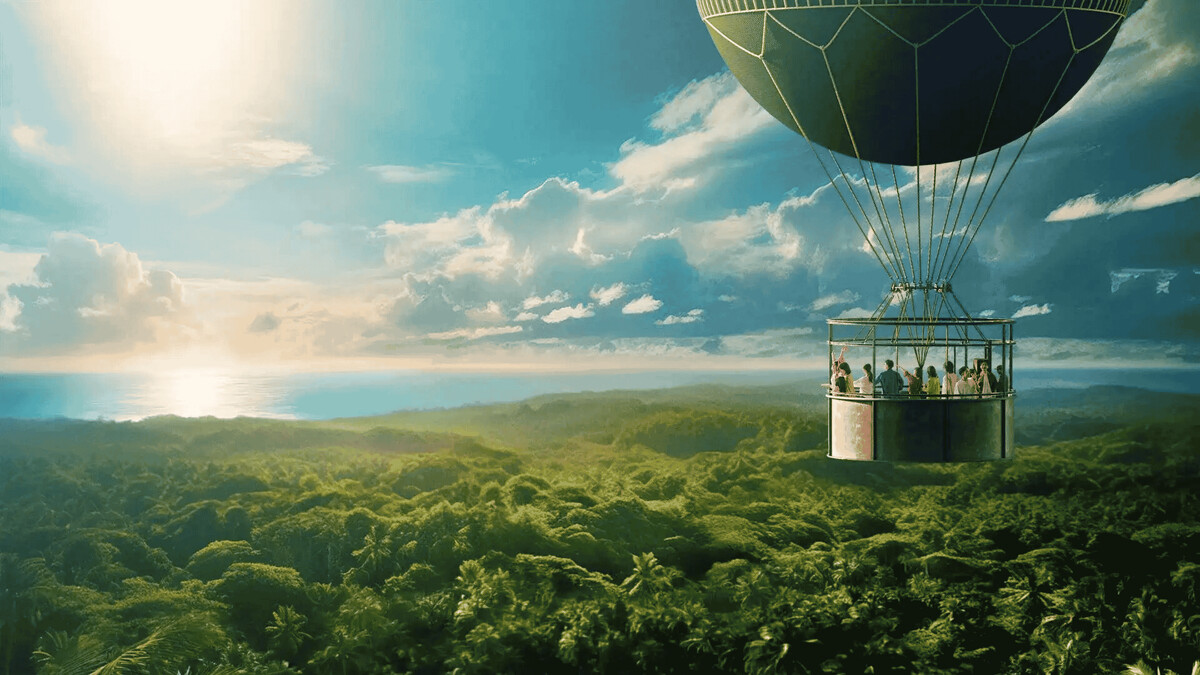 從巨型熱氣球上俯瞰,360°全方位壯觀景色一覽無遺!充滿生命力的山原樹木,以及隨著海拔升高,漸漸映入眼簾的翠綠海洋在陽光照耀下熠熠生輝。眺望廣闊無垠的湛藍天空,還有將天際染成絢麗漸層的橘粉色夕陽,每個時段有各自美麗的壯麗景觀,無論看多少次依然感動。HORIZON BALLOON 使用日本少見的瓦斯熱氣球,獨特的漂浮感及穩定的飛行締造奢華的天空之旅。在超過 200 公尺的高空境界裡,優雅啜飲著氣泡酒、悠閒地享受在吊籃中放鬆的片刻,相信這一小段時光將成為令人畢生難忘的回憶。