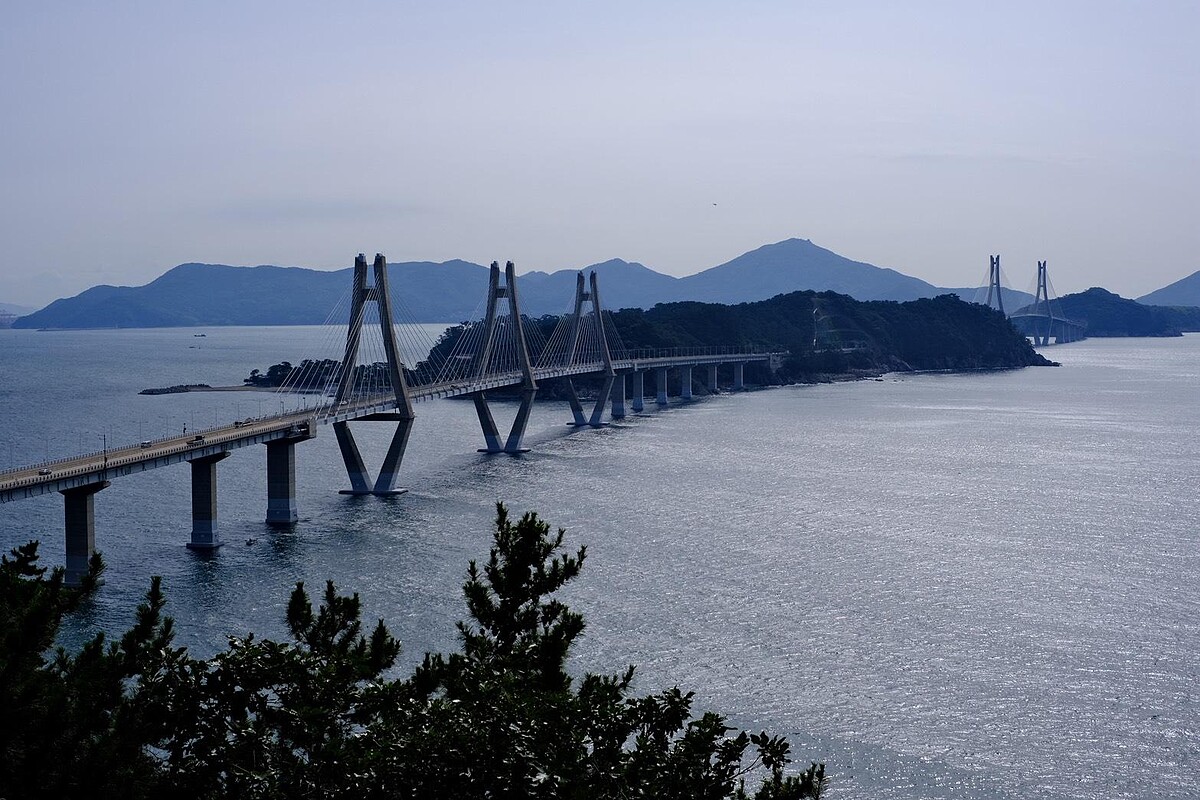 連接釜山與巨濟的「巨加大橋」可以說是韓國工程美學與永續建設的象徵,總長8.2公里,包含3.5公里的海上斜張橋、3.7公里的海底隧道與1公里的陸上段,從加德島一路延伸至長木面,把南海的廣闊與橋體結構的宏偉合而為一。展望台就設在巨加大橋起點不遠處,從這裡可遠眺南海岸線與大橋全景。無論是白日藍天映照下的銀白橋面,或是夕陽餘暉中的金色線條,都能讓人感受到這條橋梁與自然和諧共存的力量。這裡同時也象徵著巨濟與外界的緊密連結,讓這座島嶼得以以更便利的方式開展觀光、海洋工程與人文交流。晴天時視野特別開闊,小編建議可結合自駕行程安排順遊此處,在這裡短暫停留,不僅補充體力、活動筋骨,也能收穫一幅難得的交通與景觀交融之景。