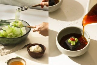 綠意上桌,品味自然之美!此次煙波名饌另也著重推出多款蔬食料理,以新鮮蔬果、豆腐為載體,打造兼具營養、美味、創意的菜色,翻轉蔬食單一乏味的印象。其中包含煙波行政主廚親研「陽光蜜香佛手沙拉」,取鮮脆佛手瓜細刨成片,搭配手撕莫札瑞拉起司與蒔蘿點綴,佐以橄欖油、酸奶與蜂蜜,使每口都清新且具深度。「青芥胡麻豆腐」主廚則以黑胡麻凝成綿密香醇的手製豆腐,淋上甘醇醬汁、輕點微辛芥末,低調中透出鮮明輪廓。