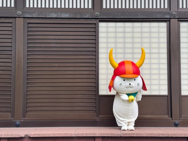 而彥根城另一位「城主」—紀念建城四百週年而生的吉祥物「彥根喵」(Hikonyan),早已成為全國知名的明星。牠戴著武士兜帽,每天在城內廣場定時現身,擺出可愛的招手與鞠躬動作,與遊客互動拍照,甚至有粉絲專程為牠而來。離開城區,沿著護城河步行不久,就能抵達夢京橋商店街。這裡完整保留了江戶時代的町屋建築,兩旁是販售和菓子、近江牛可樂餅、漬物與傳統工藝的店鋪。熙攘的市井可能比冷硬城牆逛起來更有人味。