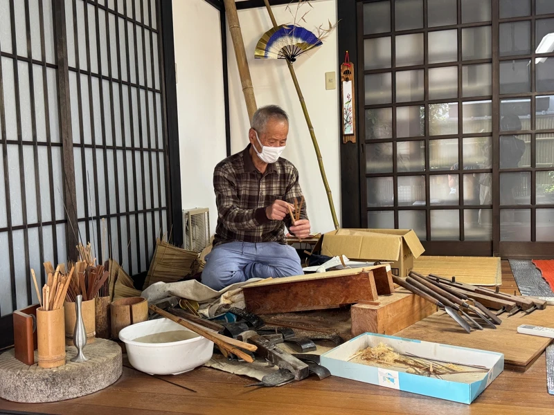 製作過程中,職人還會分享有趣的歷史背景。原來高島扇子的製作歷史已超過 300年,江戶時代便因琵琶湖水運之便,成為重要的扇子生產與集散地。成品不僅銷往京都、大阪,更經由長崎出口到中國、東南亞等地。明治到大正時期,日本的紙扇和竹扇出口量龐大,為了迎合海外市場,高島的工匠甚至會在扇面繪製異國風景或西式花卉,與國內常見的花鳥圖案截然不同。
