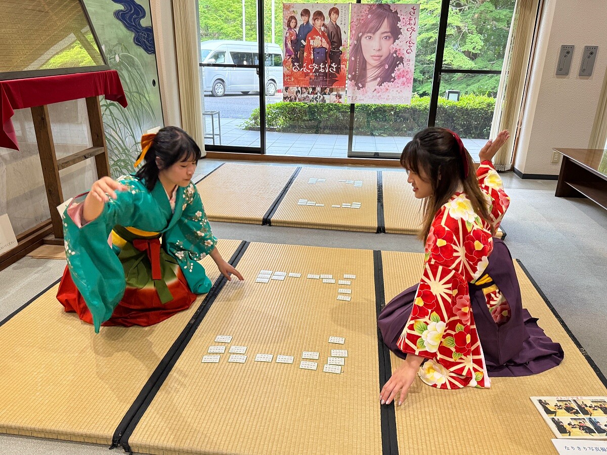 體驗活動從換上傳統和服「袴」服開始,衣料的垂墜感與鮮豔色彩,穿起來多了分自在,讓人瞬間融入平安時代的氛圍。工作人員細心講解歌牌的規則與禮儀,接著便開始在詩歌被吟誦的瞬間迅速拍下正確的牌的模擬比賽。拍擊的聲響在木地板上迴盪,帶來一種出乎意料的緊張感。