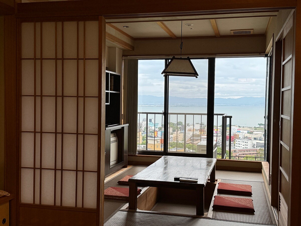 位於琵琶湖西岸的雄琴溫泉,是關西地區知名的溫泉鄉,而雄山莊則是其中備受推崇的高級旅館。走進大廳,大片落地窗正對著湖面,讓人一瞬間沉浸在開闊的視野中。最受歡迎的是帶有私人露天溫泉池的客房。當夜幕降臨,點起柔和的燈光,溫泉池邊便是靜靜延伸的湖面,遠處的燈火映在水波上,泡湯時感覺整片湖都在與你對話。清晨則能一邊泡湯、一邊看著日出緩緩從湖面升起,水氣與晨光交融,身心無比舒暢。