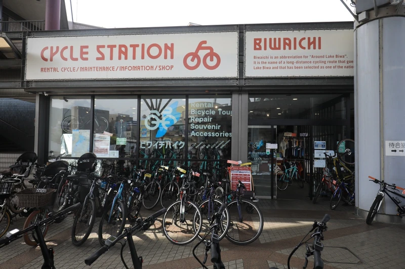 旅程從大津港附近的BIWAICHI BIKE單車租借站開始。這個服務最大的魅力在於靈活。你可以在多個站點取車、還車,線上預約簡單快速,還能選擇電動輔助車款,減輕長距騎行的負擔。每日租車價格依車種和時間而定,從3,300日圓(5hr標準越野自行車)到18,700日圓(3天2夜折疊式電動自行車)不等。