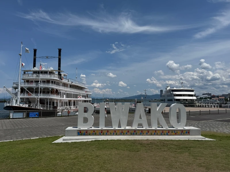 午餐巡航約 80–90 分鐘,船身緩緩駛離港口,湖面在陽光下閃成一片金色,伴著復古洋服的工作人員在台上全力娛樂鄉親。船上的餐廳提供西式套餐,邊用餐邊透過落地窗欣賞湖景,視野不斷變換:一會兒是延伸到天邊的湖水,一會兒是岸邊的公園和零星的船影,悠揚的旋律與湖風交織,旅人們三三兩兩拍照、聊天。站在船頭,讓人更感受到琵琶湖的寬闊,這座日本最大湖不只是滋賀的象徵,更是一片有自己呼吸節奏的水域。