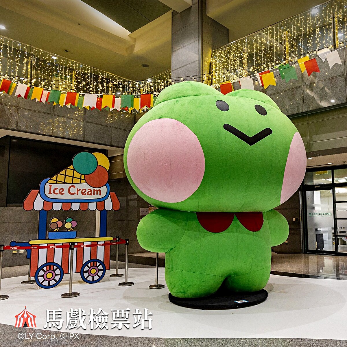 繽紛的甜甜圈造型摩天輪,LINE FRIENDS 角色們坐在車廂中向大家揮手微笑,趣味與療癒感滿滿,成為燈區中最吸睛的歡樂地標之一!