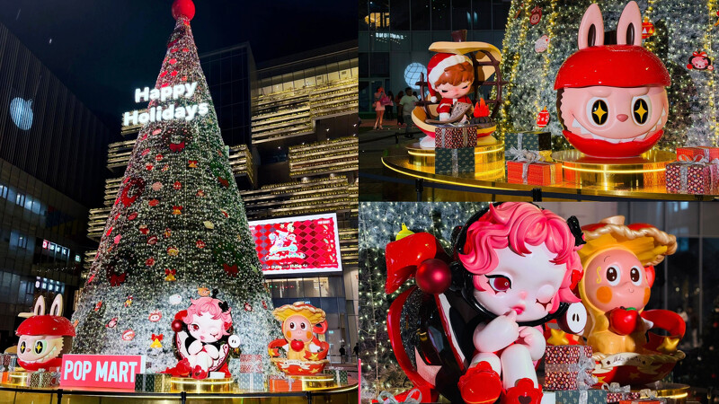 今年最可愛聖誕樹!南紡購物中心攜手超夯IP「泡泡瑪特POP Mart」打造「泡泡瑪特聖誕樹」!不只樹身上有可愛角色圖案,樹下更有Labubu拉布布、Dimoo、Skullpanda、Hirono小野,全都以溫馨紅色調現身,吸引粉絲搶拍!每晚整點都有絢麗燈光秀;五、六、日19:00、20:00更有「奇幻雪花秀」,是不是該衝一波?