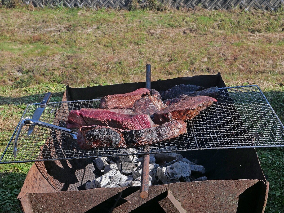 在比賽期間,餐廳會準備多樣美食,除了正規的早中晚餐,期間還穿插了點心時段,沒有什麼比在冷冽的天氣中喝上一口味噌咖哩湯更療癒的事情,就連平凡無奇的飯糰都變得讓人心滿意足。重頭戲是餐廳在午後端上整支、重達60公斤的烤牛腿,取用當地飼育的「段戶牛」,豪邁的擺上炭火之上,再一一切割分送,光是沾取胡椒海鹽就讓人感受到鮮甜與脂香。