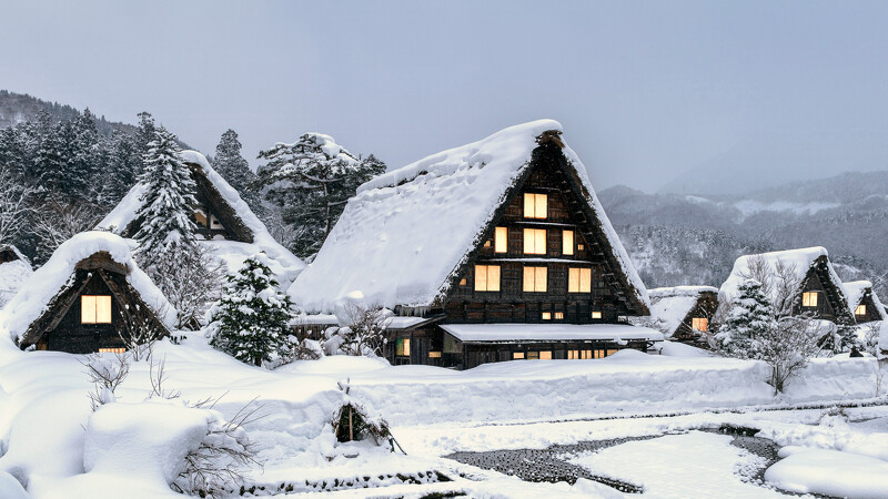 整個村落由一棟棟傳統合掌造木屋組成,屋頂覆蓋著厚厚的白雪,當夜幕低垂,燈光亮起的那一刻,彷彿走進浪漫的童話世界!每年點燈活動總是吸引來自世界各地的遊客,如有計畫前往建議提早預訂行程把握絕佳美景。