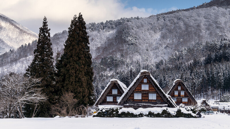 如果你是行家,就會知道不只有展望台很值得拍,三小屋也是十分有名的取景地點,三座小屋的建造位置間距剛剛好,拉遠一點就可以一次拍到三座小屋,不論是冬天的雪景或是夏天的稻田景色都美不勝收。