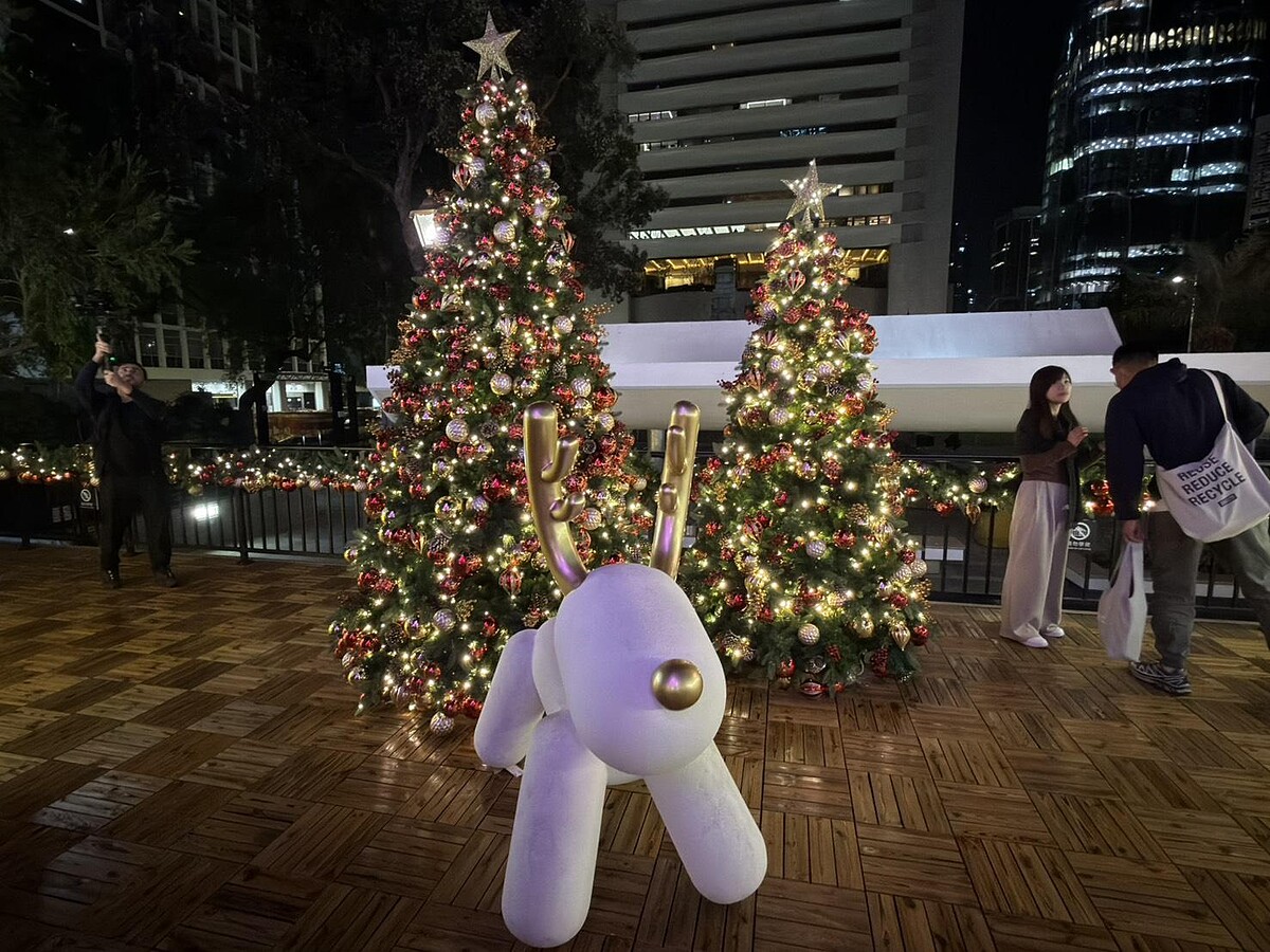 每年冬天中環總是最早進入節慶氛圍的地方,「香港繽紛冬日巡禮」把年末氣氛集中在皇后像廣場花園一帶,白天是金融區的綠地,入夜後則成為節慶舞台。皇后像廣場花園化身成聖誕天地,裝置散落其間,除了童趣味滿滿外,還帶著歐洲城市冬日市集的異國風情。最醒目的是高達20米的戶外聖誕樹,6層樓的高度在夜裡看起來閃閃發光真的超級美。連接花園的遮打道被打造為星光長廊,燈飾沿著樹木鋪展開來,光線柔和意外地讓原本步調快速的中環在傍晚亮燈後自然慢了下來。一路走進置地廣塲中庭,「Noëlia at LANDMARK」的大型互動裝置成為視覺重心,高聳燈塔與祈願湖,讓熟悉的商場空間多了一層節慶想像。夜色完全降臨後,「光影匯·中環」正式登場,中環八幢地標建築化身為巨型光影畫布,3D投影在歷史建築與摩天大樓之間流動,節慶圖像隨著音樂節奏變換,讓金融區短暫變成一座流動劇場,小編建議大家要記得帶行動電源,以免拍照拍得太開心手機沒電!
