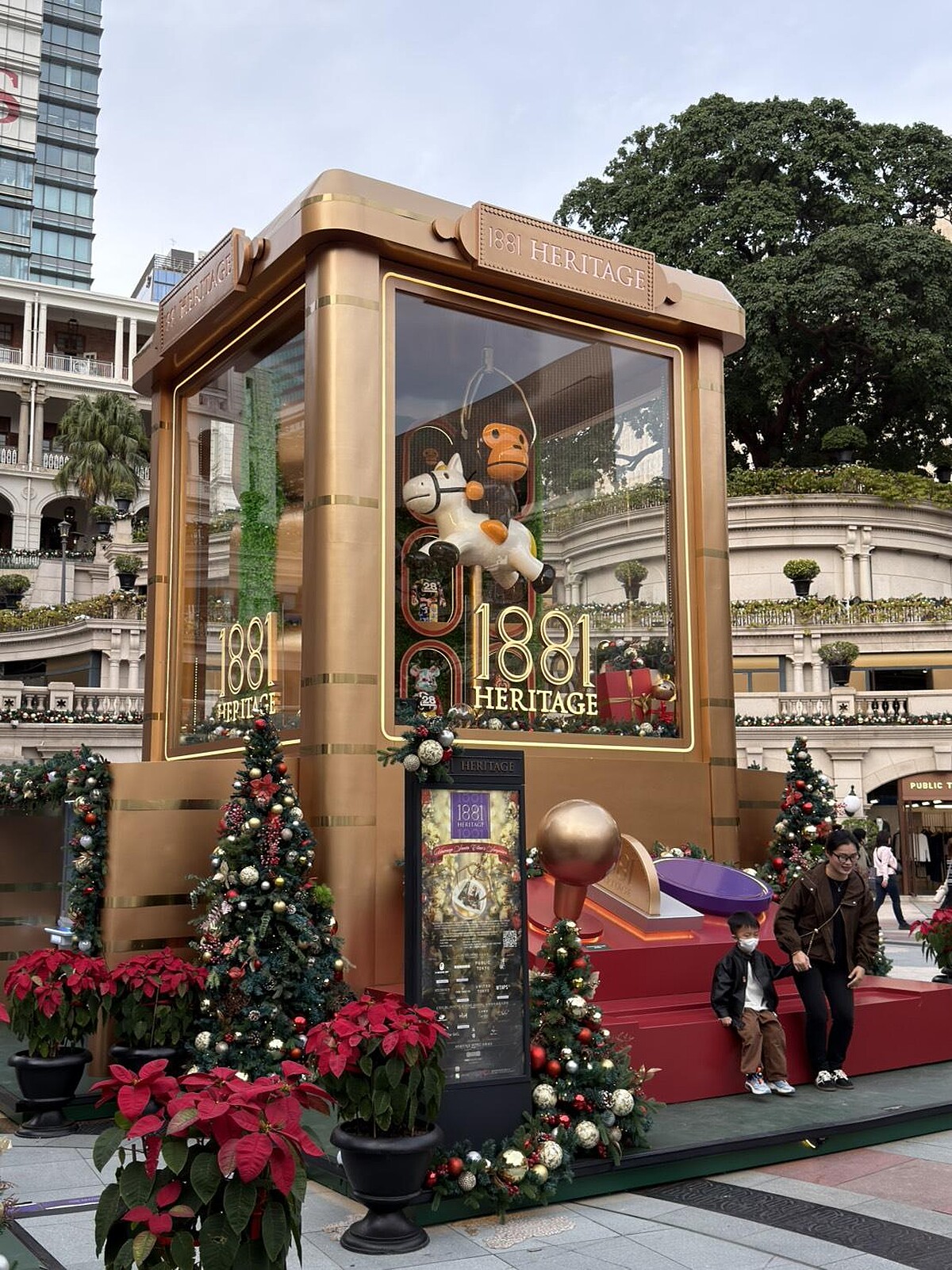 位於尖沙咀廣東道的1881是一座擁有超過140年歷史的古蹟,這次選擇用潮流語言重新走進年輕世代的視野。1881首度與國際潮流品牌與本地時裝集團合作,引入多個潮牌名店,讓原本偏向觀光動線的空間,多了年輕消費者的停留理由。廣場中央以「Unwrap Santa Claw’s Surprises」為主題的巨型夾公仔機,成為最具辨識度的畫面。機內一隻高達1.6米、騎著木馬的BABY MILO®呼應即將到來的馬年,也精準踩中近年席捲香港的夾公仔熱潮。夾公仔機背面的主題牆以插畫風格描繪1881建築外觀,時間球塔與前九龍消防局被細緻地畫進畫面裡,讓潮流裝置與歷史背景自然交會。品牌進駐方面,WTAPS®、NEIGHBORHOOD®等潮流品牌陸續到位並推出香港限定禮遇,街頭文化也延伸到餐飲。此外東京時裝品牌體系、護膚期間限定店,以及多間人氣餐廳進駐,讓1881在逛、吃、停留之間,形成更完整的節奏。這裡原為香港水警總部舊址,由多幢具法定古蹟身分的建築組成。經過活化後1881逐步從歷史地標,轉化為結合文化、潮流與生活的城市節點。