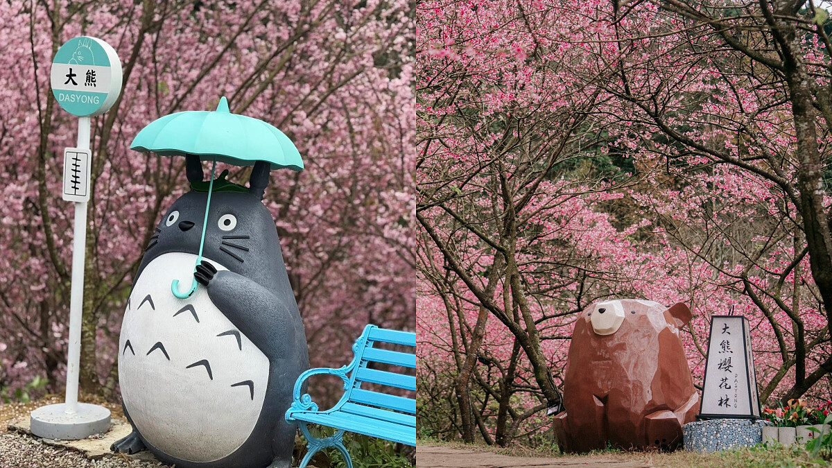 佔地廣大的「三峽大熊櫻花林」已營運7年,栽種超過4000棵櫻花樹,品種包含三色櫻、八重櫻、香水櫻、富士吉野櫻、染井吉野櫻等,在每年之初接續綻放,將整座山頭妝點成春意盎然的浪漫模樣,是與家人、好友、另一半促進感情的絕佳約會場所。除了能漫步於櫻花林下,園區內更有多處可愛造景,像是紅色鳥居、龍貓公車、棕熊等,滿足大家的拍照打卡需求,已成為超人氣的賞櫻秘境。