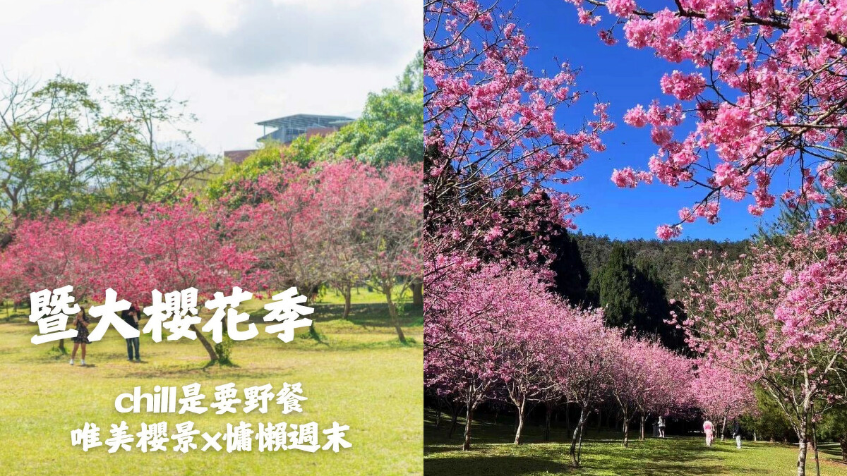 同樣位於南投的國立暨南國際大學櫻花季,在1/15-2/22迎來「2026暨大櫻花季」,而現在已正式進入最美時刻!佔地廣闊的校園草原上,種植上千株八重櫻、山櫻花及垂櫻,並結合主打「低碳、文藝、在地」,規畫了結合「櫻花、茶道、音樂、咖啡」的系列活動,遊客可以在盛開櫻花樹下來場精緻的「櫻花茶席」,周末更有「小農市集」、「親子放風遊程」,一邊品味著手沖咖啡香、聆聽草地音樂會,度過別於以往的櫻花饗宴。