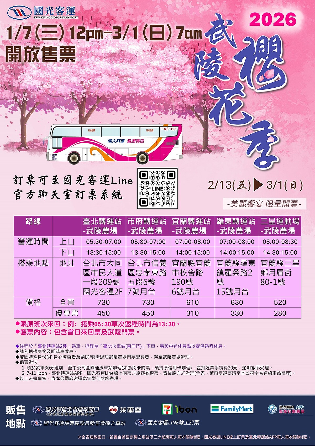 「國光武陵櫻花專車」5大接送地點票價資訊