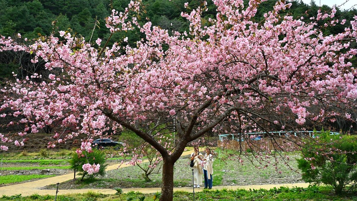 藤花園:這裡有「山櫻花/緋寒櫻」絕美盛放,還能捕捉到姿態優雅的「枝垂櫻」景色。