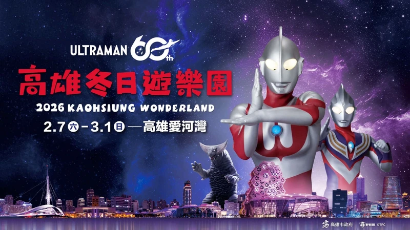 日本經典IP「超人力霸王 Ultraman」 降落2026高雄燈會!這個橫跨老中青三代的經典人氣角色正式邁入第60個年頭,成為「2026高雄冬日遊樂園Kaohsiung Wonderland」主角。以「超人降臨港都」為故事主軸,透過「超人力霸王」正義、守護城市的意象,為生活的無名超人致上最高敬意。高雄港16-18號碼頭有許多主題裝置、夜間更會打光變身「光之城市」,完全是不可錯過的親子樂園。