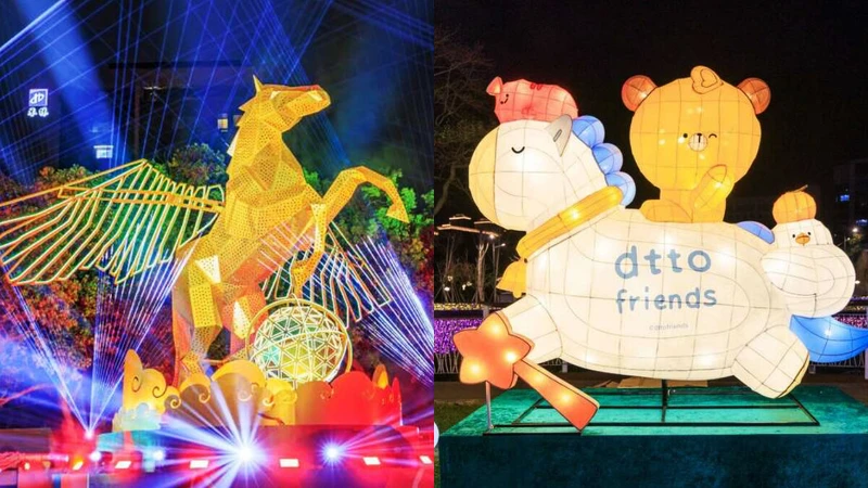 話題超滿的「2026新北燈會」,總共規劃16組主題燈區,從日到夜都好好拍!身為最大看頭的主燈「勁馬奔騰」以童話故事繪本發想,結合LED燈光投影,帶領遊客走進一段童趣想像、光影科技與在地文化交織的奇幻旅程。另外6米高線條小狗、每日精彩表演、170攤美食市集也都使人想即刻出發。