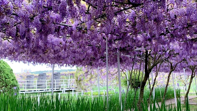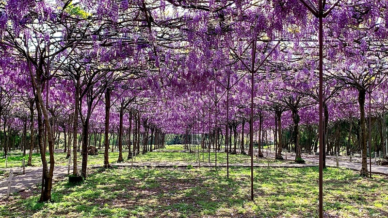 一號屯山園區占地1500坪、種植400株日本紫藤花;二號水源園區占地8000坪、種植1100株日本紫藤花,在春天盛放的浪漫畫面,將迎來數以億計的紫藤花海,即便短暫卻仍能在旅客心中掀起廣大漣漪。