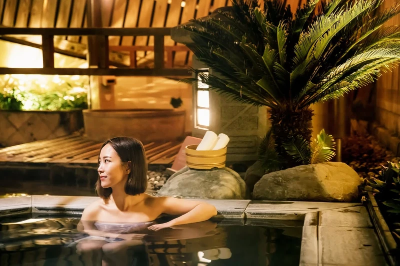 盈家溫泉是許多露營愛好者與家庭客的首選,以「原石砌成」的庭園風呂為其核心特色。不同於現代化飯店豐富的水療設施,盈家力求「靜態泡湯」的純粹訴求,刻意減少按摩浴缸等機械干擾,讓旅人在 360 度山嵐環繞下,真正徜徉於大自然的懷抱。這裡的泉質屬中性碳酸氫鈉泉,業者堅持每日清池換水,並採「原湯活水溢流」方式運作,確保水質優良且具備不同溫度的層次感,讓肌膚在冷熱交替中加速代謝。此外,園區結合了餐飲與露營功能,其預約制的「招牌桶仔雞」更是許多饕客造訪盈家不可錯過的美食亮點。
