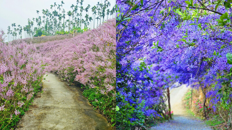 其他還有由錫葉籐交織出150公尺長的「紫色隧道」、多處九重葛花牆呈現出調色盤般的繽紛模樣,而在3月初左右更有亮麗的黃金風鈴木即將登場,「四花四色」搭配今年全新的童話場景打卡點,再度引爆社群成為打卡熱點。每年花季只有短短一個月,想朝聖的人手腳可要快!