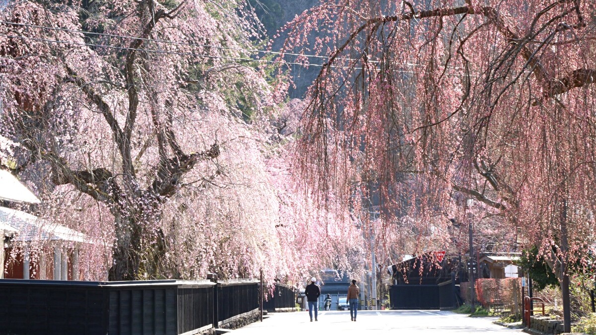 景點特色:400株枝垂櫻從古老武士宅邸的圍牆後垂下,靜謐典雅。