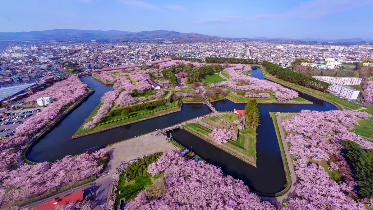 景點特色:登上五稜郭塔俯瞰,可以看見一整顆粉紅色的星型城堡。