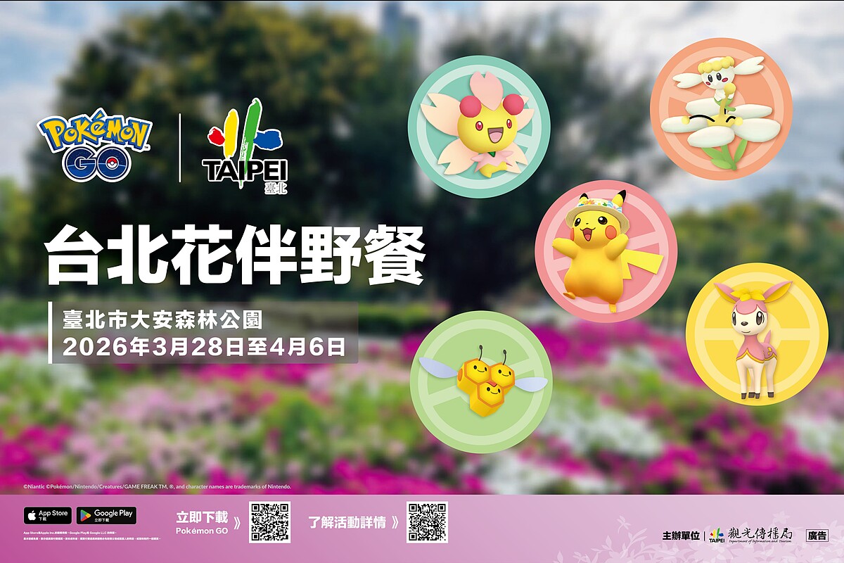 春日舒服的溫度最適合來場療癒野餐!本周末3/28~29舉辦的「2026台北花伴野餐」將於大安森林公園盛大登場!今年首度攜手全球熱門手遊《Pokémon GO》打造跨界體驗,不僅有6米高巨型皮卡丘氣球現身,更推出「戴著花帽的皮卡丘」捕捉活動。現場還規畫三大主題野餐區、國際美食市集、跑咖地圖等,邀請大小朋友一同享受春日時光。