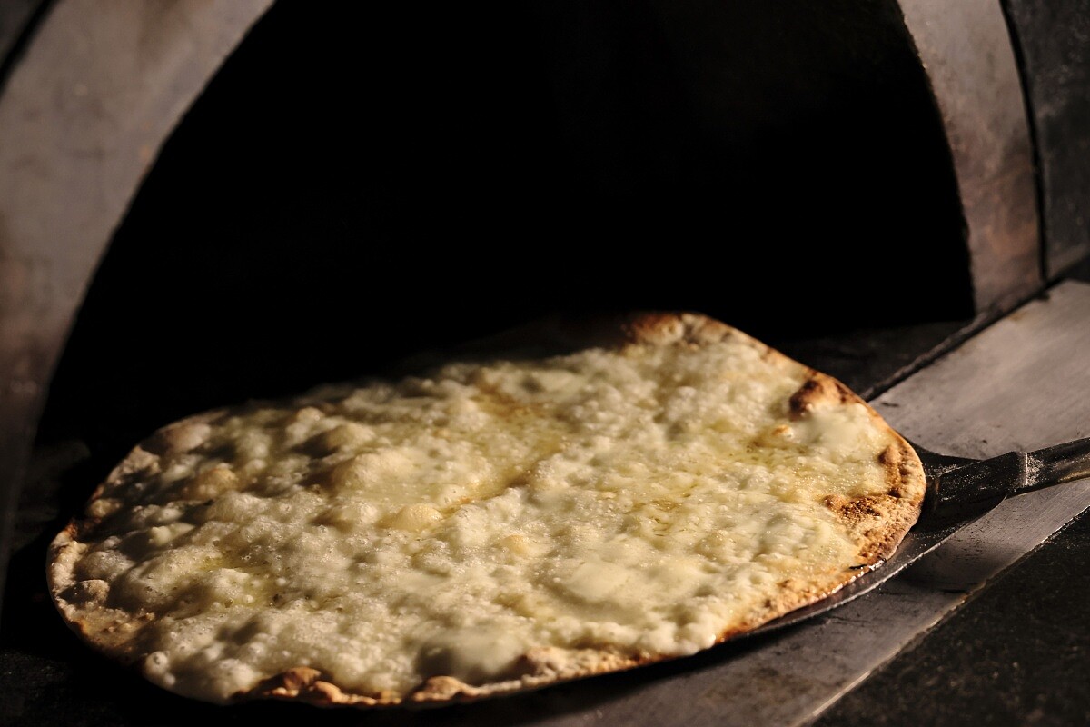 「FORNI」在義大利文裡有「烤爐」之意,所以開放式廚房裡那座大型窯爐就是這裡的主角,所有現烤披薩跟燒烤料理都在這裡完成。飯店特別請來曾在紐約名店「Jean-Georges」擔任首位日籍副主廚的米澤文雄作為顧問,他發揮擅長的食材處理技巧,將京都野菜的甘甜與道地義式風味結合在一起。