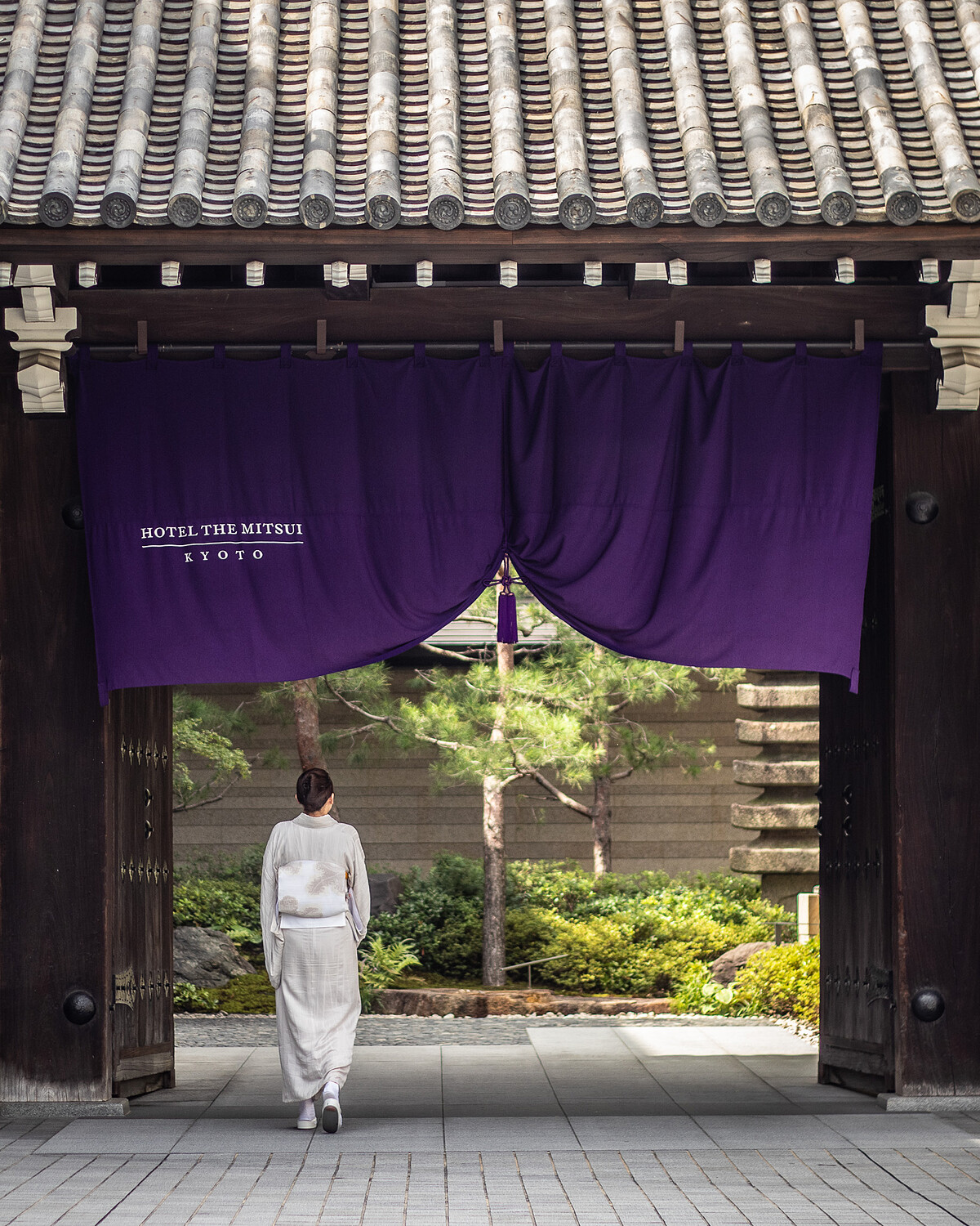 三百多年,三井家族的人就是從這裡進出,並選擇將其安置在相對靜謐的小街,刻意的用低調、謙遜地方式存在。2020年11月開幕的「三井豪華精選酒店」當然大可以把這座宏偉、優美的梶井宮門放在顯眼的二條城對面,不過他們選擇了一種京都式的內斂開場白。同時,這也是一種將車聲、喧鬧隔絕在門外的方式,轉個彎進來才能看見梶井宮門,日文裡有「幽玄」一詞,說的就是這種深邃而難以言說的靜謐感。