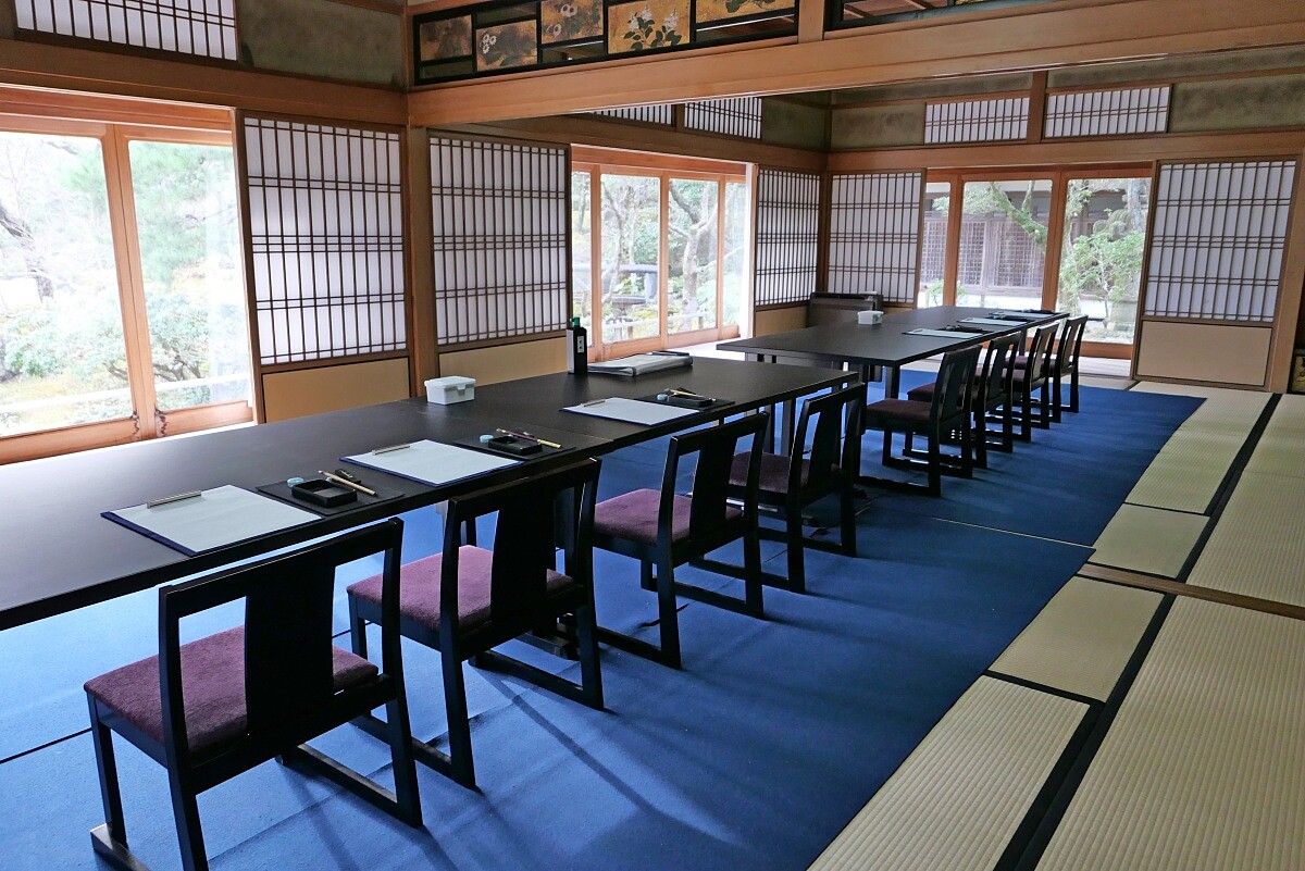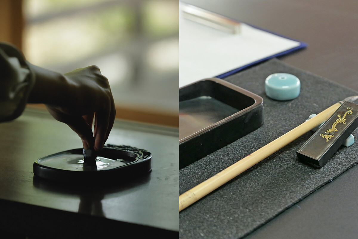 文化底蘊深厚的奈良,讓飯店的活動安排也如此與眾不同。第一天清晨我們在茶室磨墨、提筆書寫,至於為什麼是書法?因為奈良的製墨工藝的起源,要追溯至西元806年由留學唐朝的僧侶空海帶回的製墨法。當時他收集寺院天花板上的煙灰混製成墨,開啟了這座城市與墨長達千年的連結,至今奈良墨仍佔日本產量的九成以上。窗外是吉城園的日式庭園,平靜感隨墨香自然而然地迎來。