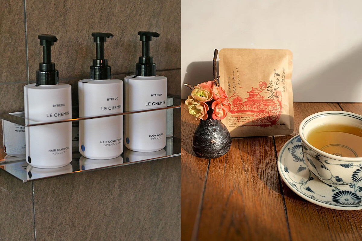 其他還有席夢思床墊、Byredo 沐浴用品,以及奈良漢方美容品牌「THERA」,就連茶包也是選用當地「健一自然農園」的茶葉,光是看到包裝彩繪的奈良景色就讓人心情大好。在經過一天的飛行,三天的行程,房內的溫泉,已經是清晨或深夜裡最療癒的場所,也是飯店為旅人預留了能與這片千年時光獨處的空白。
