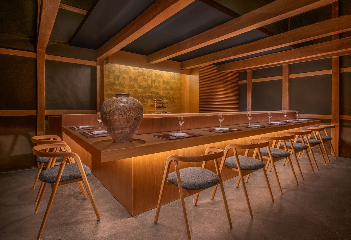 隈研吾將公舍舊倉庫改造為壽司吧「正倉」(Shoso),整個空間相當有私密性,僅設有8席座位,提供板前套餐「古櫃」(KOKI),且不以傳統壽司的順序鋪陳,而是拆分為「庭」、「酢」、「旨」、「蒸」、「漬」等主題,每一道料理對應一種味道或技法,也同時對應一款酒。