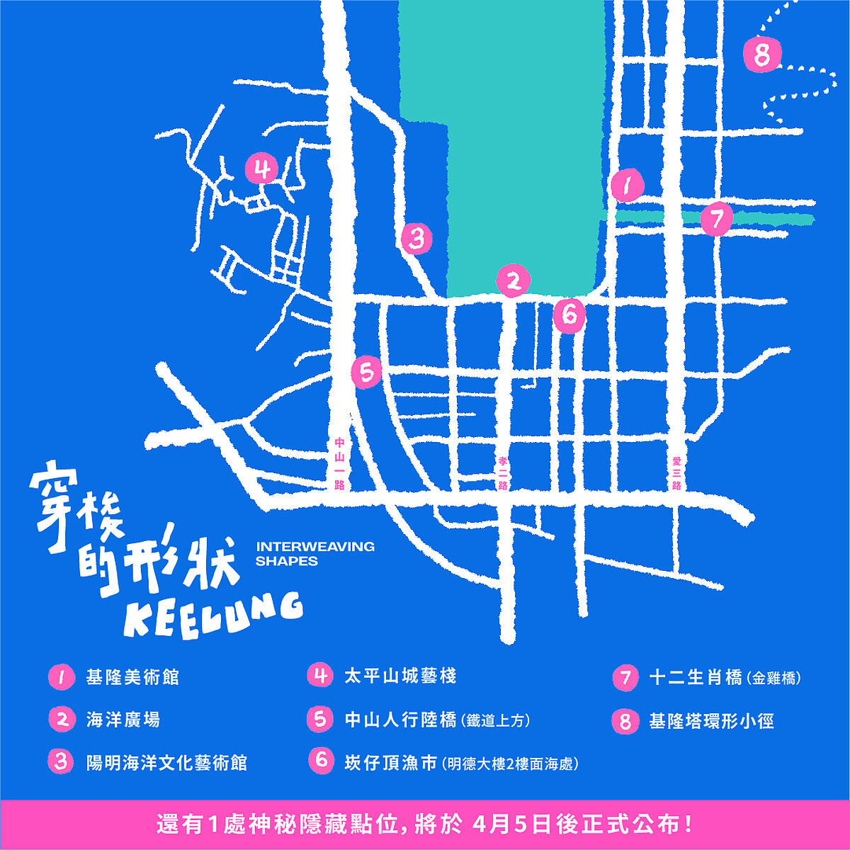 《穿梭的形狀》最迷人之處,不同於需要長時間停留的展覽,它將整個基隆港區化作一座巨大戶外美術館,從基隆美術館或海洋廣場出發,逆時針或順時針走一圈,約2小時即可串聯主要展點。過程中能體驗基隆「上一秒山城、下一秒港口」的獨特地形轉換,讓展覽本身成為一段城市旅行。