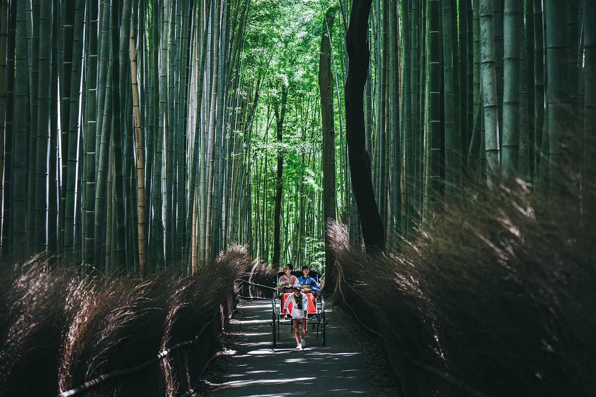 即便未曾到過嵐山的人,大概也會看過那片竹林的景色,垂直又茂密的竹林,光線從上面緩緩灑落而下。只是,這次我是搭著人力車走進那片風景裡。直到坐上去後才意識到,路邊那些舉著手機的人,鏡頭對準的不只是竹林,還有坐在車上不知道該看哪裡的我。嵐山的風景很容易被簡化成竹林與渡月橋,但這次停留的「翠嵐豪華精選酒店」所在的位置,其意義顯得不太一樣。