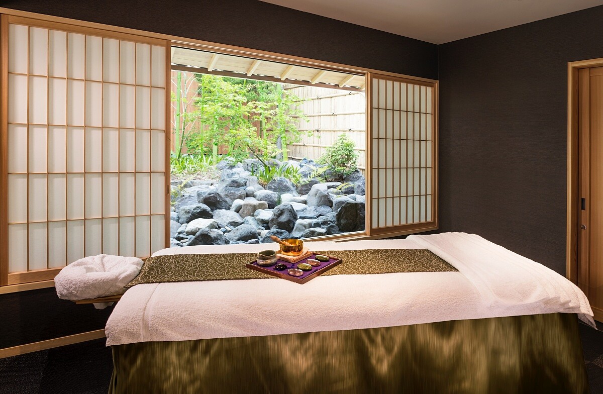 酒店也設有 SPA 服務,並沒有固定空間,反而結合館內兩間可包場使用的露天溫泉「洛」與「庵」進行,讓泡湯與身體護理能一次體驗。可選擇不同時間的療程,像是130分鐘療程內容將包含泡湯、全身油壓、臉部護理,並選用茶籽油、翡翠石與膠原蛋白面膜等素材;而較簡短的70分鐘療程則以半身油壓與頭部按摩為主,常見搭配柚子與檜木等在地氣味;另外也提供50至110分鐘不等的單項與組合式療程,包括穴位按壓、臉部保濕與抗老護理、足部反射區按摩以及孕婦專用療程等。最具特色的是將「塗香」這類京都傳統香料融入身體與頭部護理,讓療程在肌肉放鬆之餘,包含氣味與感官的體驗。