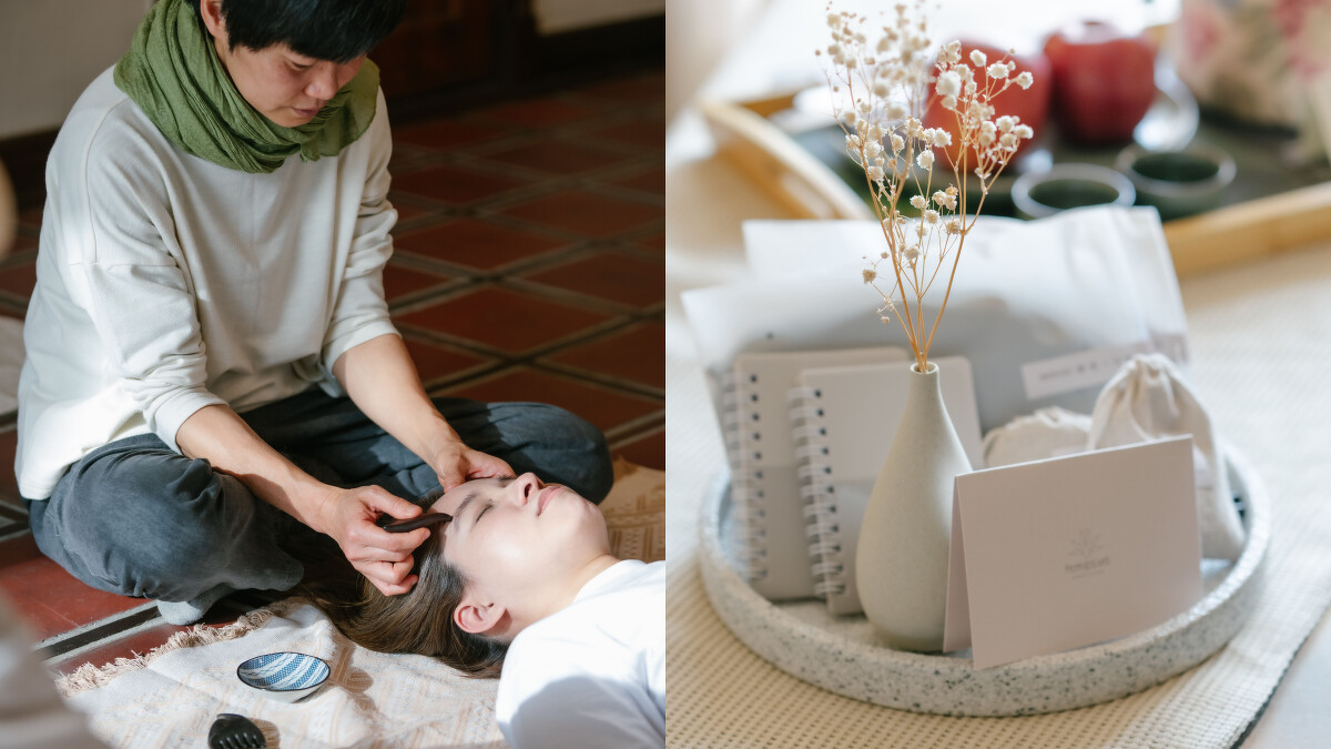 「心流」指的是全然沉浸於當下的純粹,旅客在入住期間,便能使五感進行慢動作練習。如沈浸於森林療癒、藍曬植物創作;用木工工藝師研發的「木曲梳」展開與身體的對話;水岸茶席中藉由茶香消弭日常緊繃;房內的靜心筆記、靜享眼罩、兩款特製茶包,則都帶領身心進入療癒時光。
