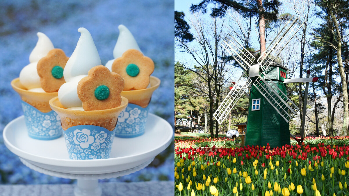 鬱金香(4月中旬~4月下旬):約28萬株繽紛色彩,營造童話般的拼布花田,與粉蝶花重疊、上演兩種花海的浪漫畫面