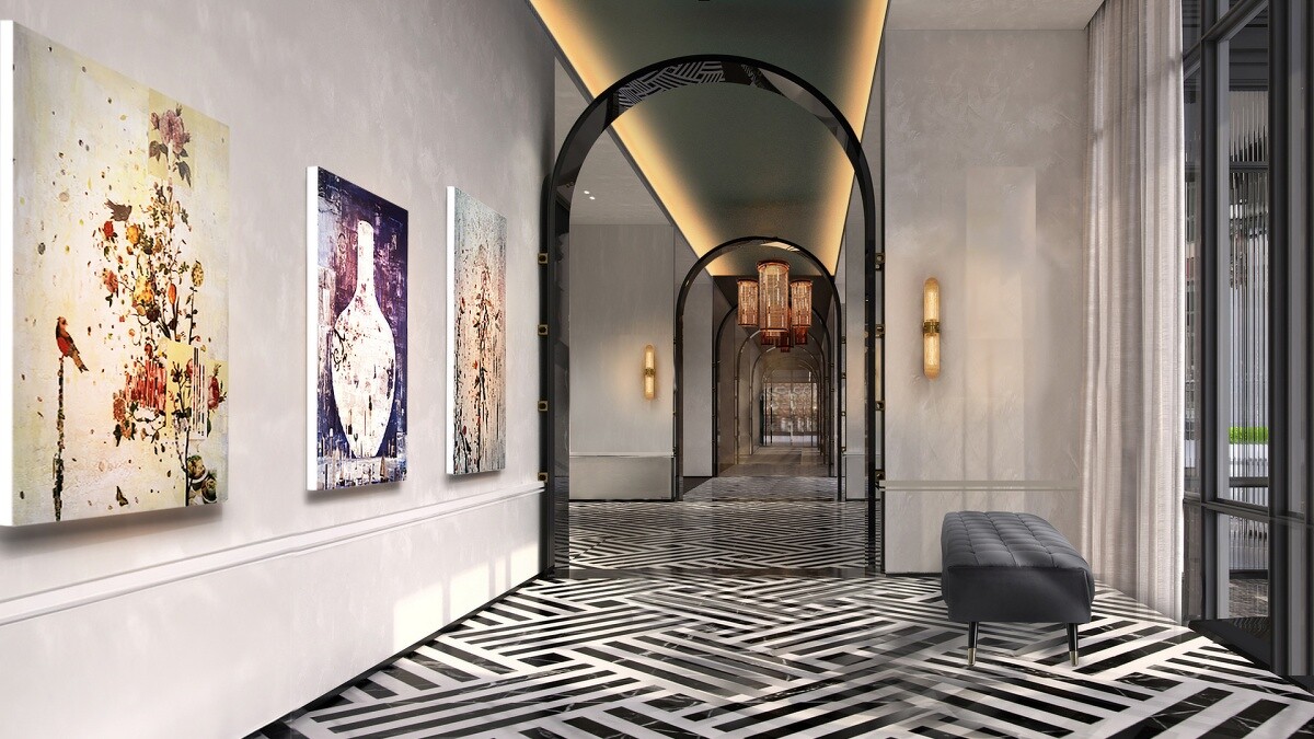 室內設計交由國際酒店設計公司BLINK Design Group的Clint H. Nagata操刀,將板橋街廓紋理、歷史建築、在地文化作為靈感,並透過當代設計語彙及融合法式優雅,塑造兼具都會風格與文化層次的魅力空間。從對稱線條、拱形語彙、廊柱與雕飾等細節,串聯起歷史與當代、東西文化風貌,並與建築外觀相互呼應。