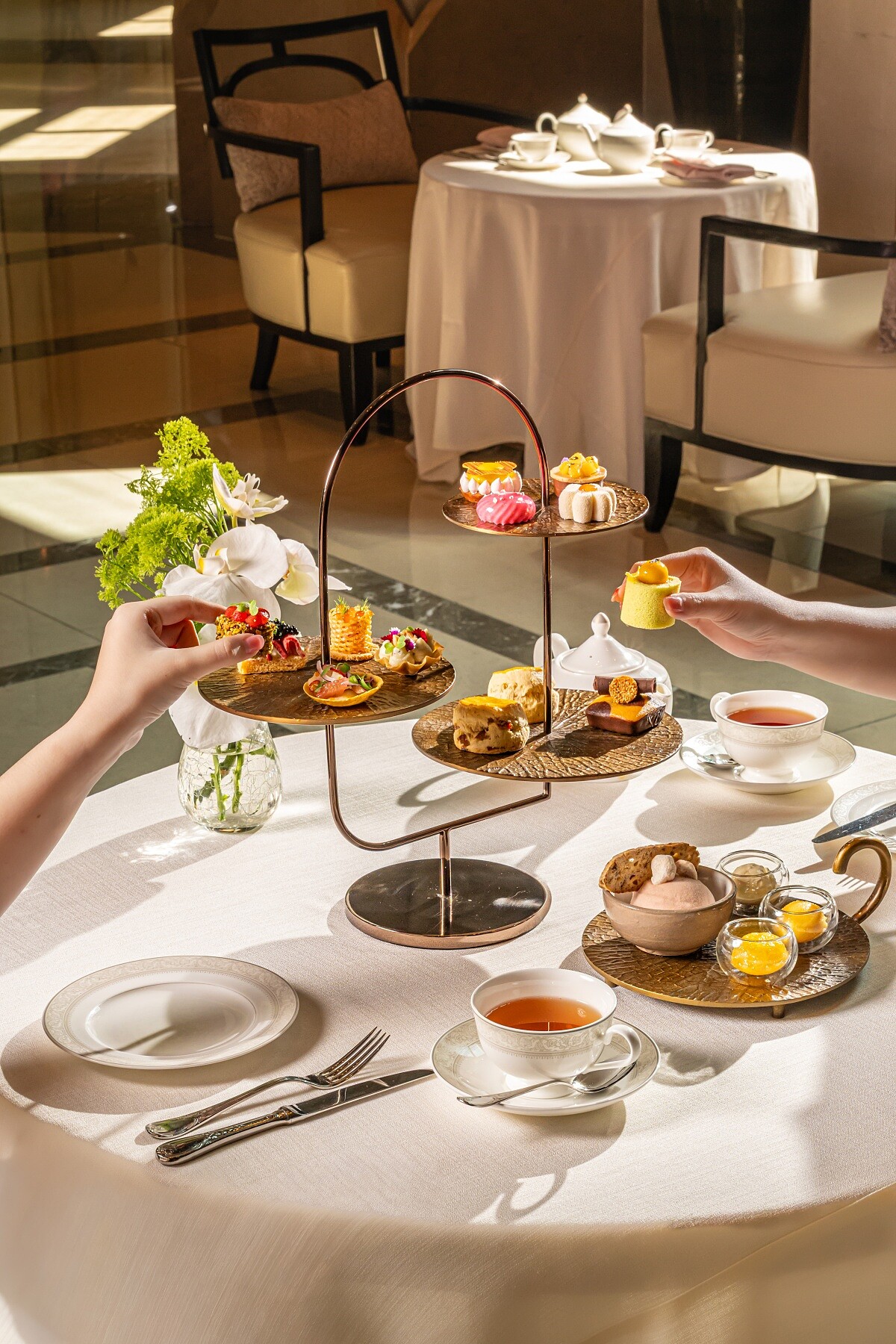 即日起至2026年5月31日,「1897 Lounge」推出由行政甜點主廚 Franck Istel 設計的夏季限定熱帶下午茶。在環境永續的前提下,主廚特別選用來自清邁、沙沒沙空與碧差汶里等地小農生產的環境友善食材,透過味蕾向在地農業致敬。下午茶以清爽的「山竹冰沙」優雅開場,緊接著登場的鹹點包含奢華的「和牛佐焦糖鳳梨魚子醬吐司」與「柑橘醃鮭魚」,展現了開胃且細膩的層次感。甜點部分將「芒果香蘭捲」、「椰子夾心蛋糕」以及選用尖竹汶府巧克力製作的「大理石蛋糕」完美結合,每一口都能品嚐到泰國時令水果的飽滿生命力。