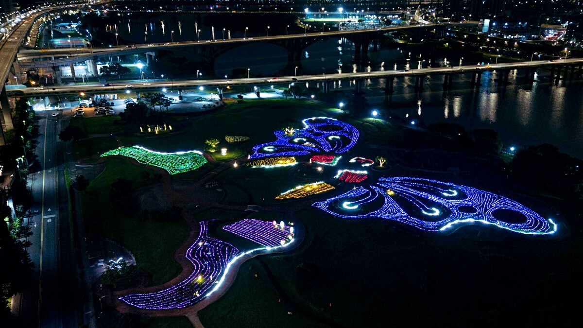 園區白天以季節草花鋪陳自然景觀,夜晚則透過光影轉換成奇幻場域,讓整座公園呈現日夜兩種截然不同的視覺體驗,吸引親子與情侶族群前往拍照打卡。