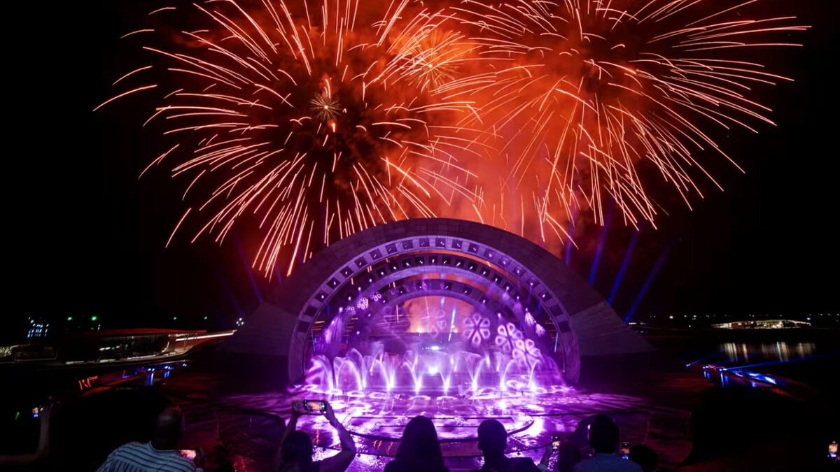 這是一場結合了水幕投影、雷射光雕、特技舞蹈與高空煙火的頂級視覺饗宴。表演描述一段穿越時空的愛情故事,背景是壯闊的南島夜空。