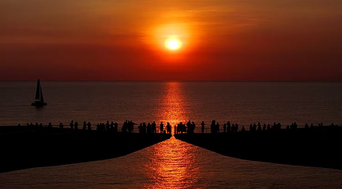 2026年最具話題性的地標,由知名建築師設計。兩座橋樑像兩條絲帶延伸向海中心,在頂端僅相距約30公分,象徵情侶間「即將吻上」的瞬間。這座橋的設計巧思在於夕陽會精準地落在兩橋縫隙中間。