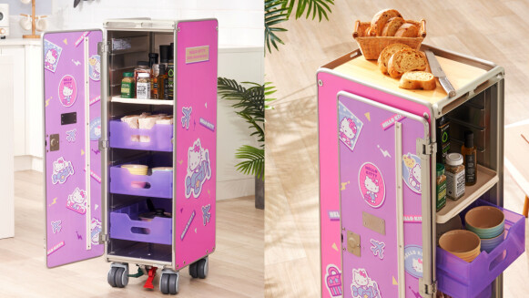 長榮航空Hello Kitty餐車限量開賣!夢幻粉紫色外型、輕巧好移動,吃貨必備的下午茶零食櫃