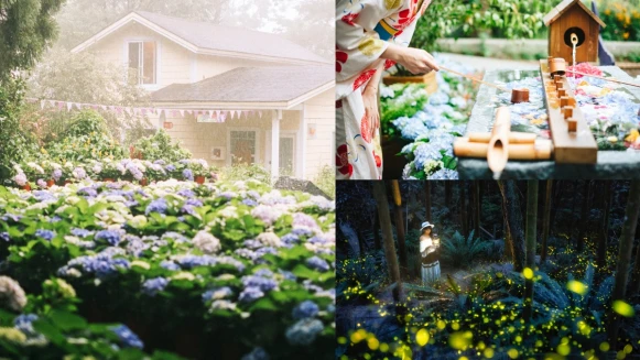 想賞唯美繡球花的人,必須衝一波薰衣草森林!台中、新竹兩間分店現在都已綻放千株藍紫色繡球花海,更佈置5大裝置藝術,甚至還有螢火蟲在山中閃爍微光,整天都好浪漫。